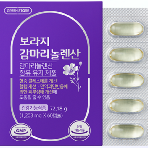 달맞이꽃, 보라지꽃 등에서 추출되는 유익한 오메가 6 불포화지방산입니다. 신체 내에서 우리 몸의 여러 생리 기능들을 조절해서 건강을 유지시켜줘요. 또, 강력한 항염 물질이 들어있어서 통증 감소 및 피부 문제에 도움이 됩니다. 감마 리놀렌산효능1) 항염과 보습 기능을 하기 때문에 다양한 피부 문제에 도움이 됩니다. 여드름아토피성 피부염만성 습진뿐만 아니라 전반적인 탄력과 촉촉함이 증가하기 때문에 피부 미용에 도움이 되어요.2) 생리전 증후군 PMS에 도움이 돼요. 가슴 통증몸의 부종 복통 및 골반통생리 전후로 나타나는 신체적인 통증을 줄여주는데 기여해요. 하지만 심리적인 우울이나 불안감, 감정 기복에는 도움이 되지 않습니다. 3) 혈행 개선 기능도 뛰어나 심혈관계 질환에 문제 가 있는 사람에게 좋아요. 심혈계 기능 강화혈압 감소혈중 콜레스테롤 수치 개선이 밖에도 신경통 특히 당뇨병성 신경병증과 관절통의 고통도 줄여준다고 합니다. 감마리놀렌산 섭취량기본적으로 권장되는 양은 하루에 160~300mg이에요.하지만 특정 신체 문제를 개선하기 위해서 드시는 분들은 아래의 복용량을 지켜주시면 좋겠어요.혈중 콜레스테롤 개선을 위해서 드시는 중이라면 최소 240 ~ 최대 300mg까지 권장됩니다.혈행을 도와주고 싶은 목적이라면 적어도 240 mg은 드셔주시고 아무리 많아도 300mg까지만 복용해 주세요. PMS 생리전 증후군으로 고생하시는 분들이라면 하루 210mg에서 많으면 300mg까지 괜찮습니다.면역과민반응에 의한 피부 (아토피, 만성습진 등)으로 고생 중이시라면 권장량인 160~300mg 드셔도 되겠어요. 먹는 방법식전 식후와 상관없이 물과 함께 드시면 되는데요. 공복에 먹었을 경우 속이 더부룩한 느낌이 든다면 음식을 먹고 드시는 것이 좋아요. 부작용독성은 없어요. 흔하지 않게 설사나 복통, 위장장애가 생길 수 있는데요. 이럴 때는 음식을 드신 후 섭취해 보시기 바랍니다. 또 간혹 두통이나 알레르기 반응을 경험하는 사람도 있다고 하네요.위에 나열한 부작용들이 나타나긴 하지만 상당히 드물고, 안전한 성분이라고 할 수 있겠습니다. 요약감마 리놀렌산효능 이런 분에게 필요해요생리전 증후군으로 힘든 사람피부 문제 개선을 원하는 분혈액순환 개선이 필요한 사람신경통이나 관절통이 있는 분하지만 증세 개선을 느끼기 위해서는 권장 감마리놀렌산 섭취량을 꼭 지켜주시기 바랍니다.