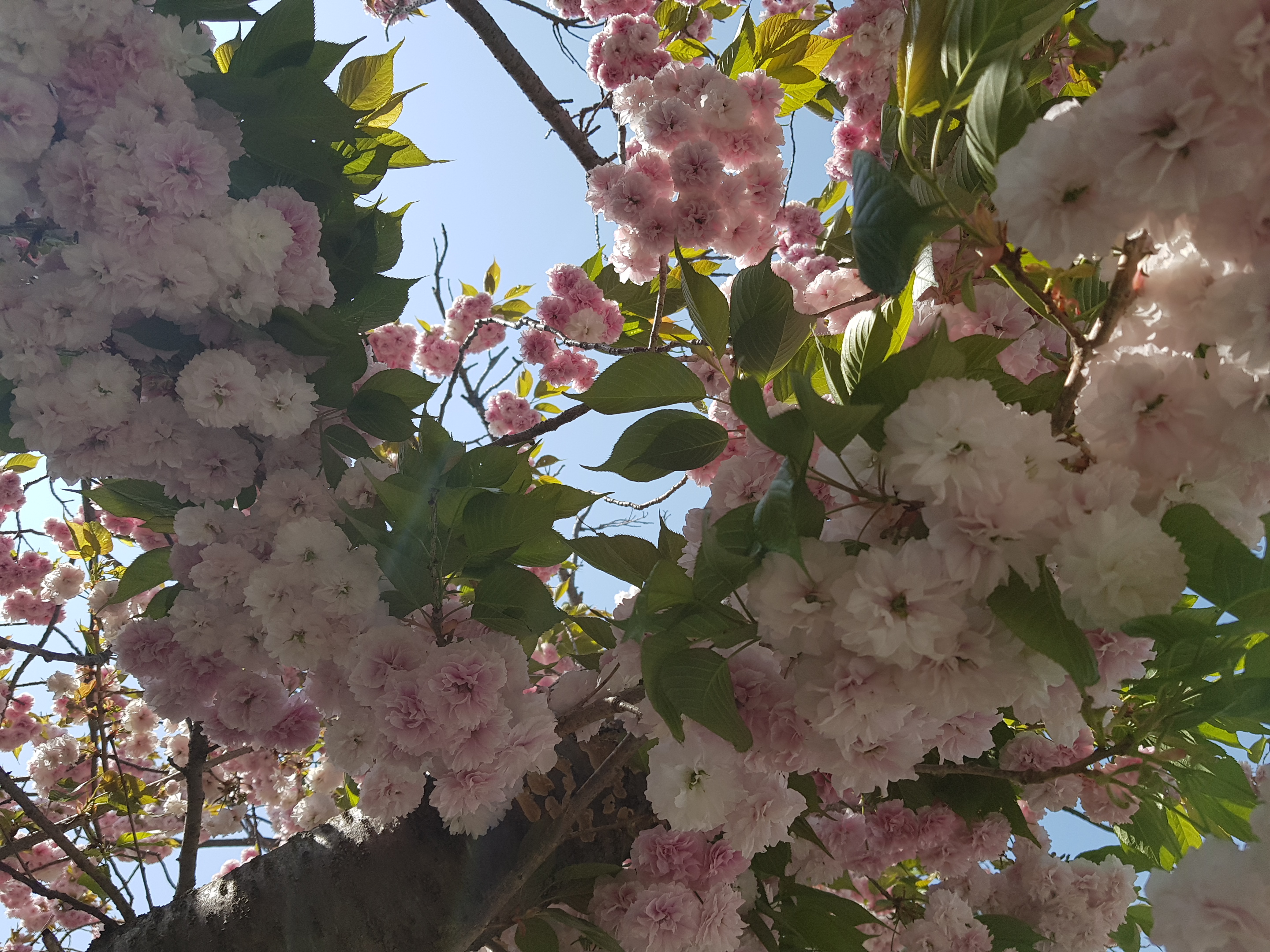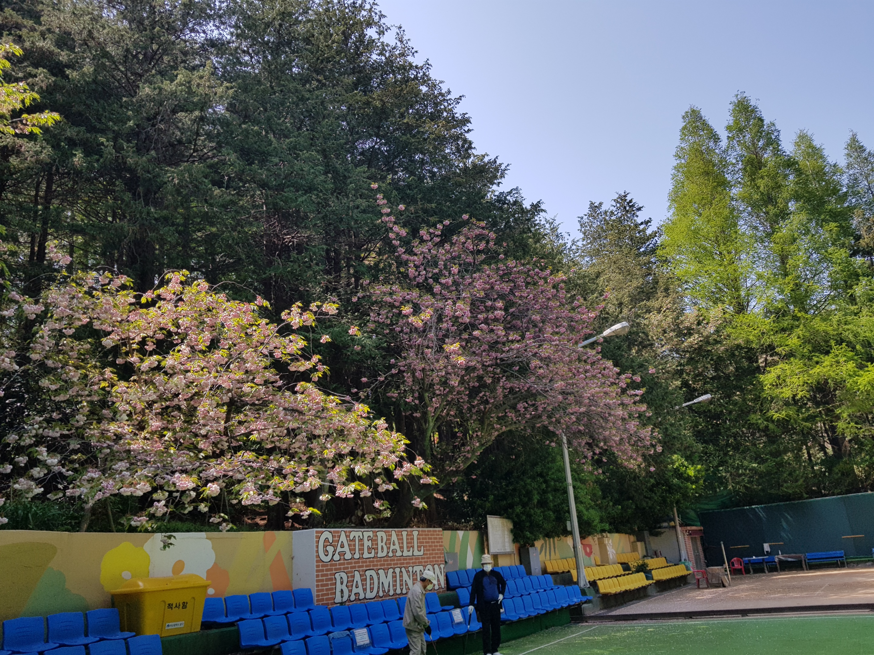 배드민턴을 치는 자리에는 늘 예쁜 꽃을 피우고 있던 두 그루의 벚나무.
