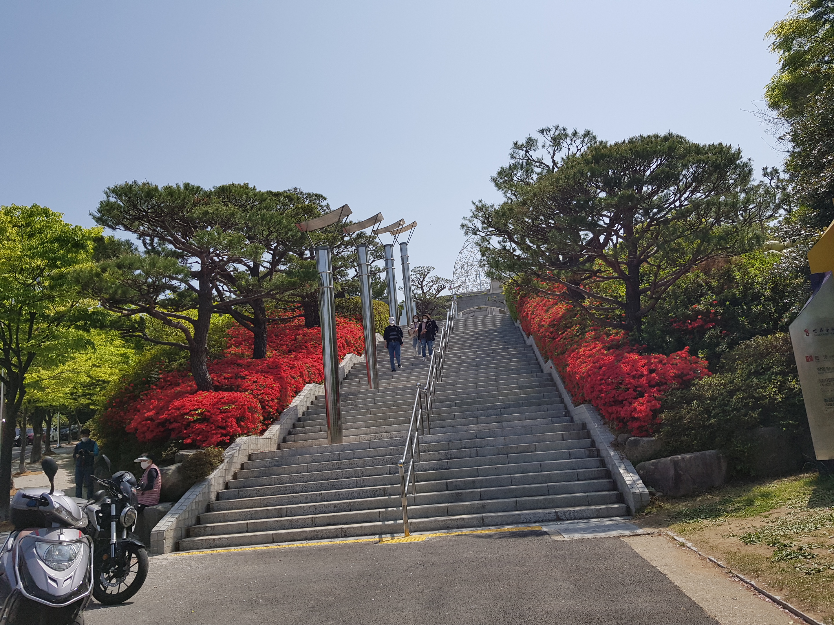 경주 보문단지의 마지막 벚꽃을 감상한 지 17일 만에 겹벚꽃을 보기 위해 부산 민주공원으로 향했다.