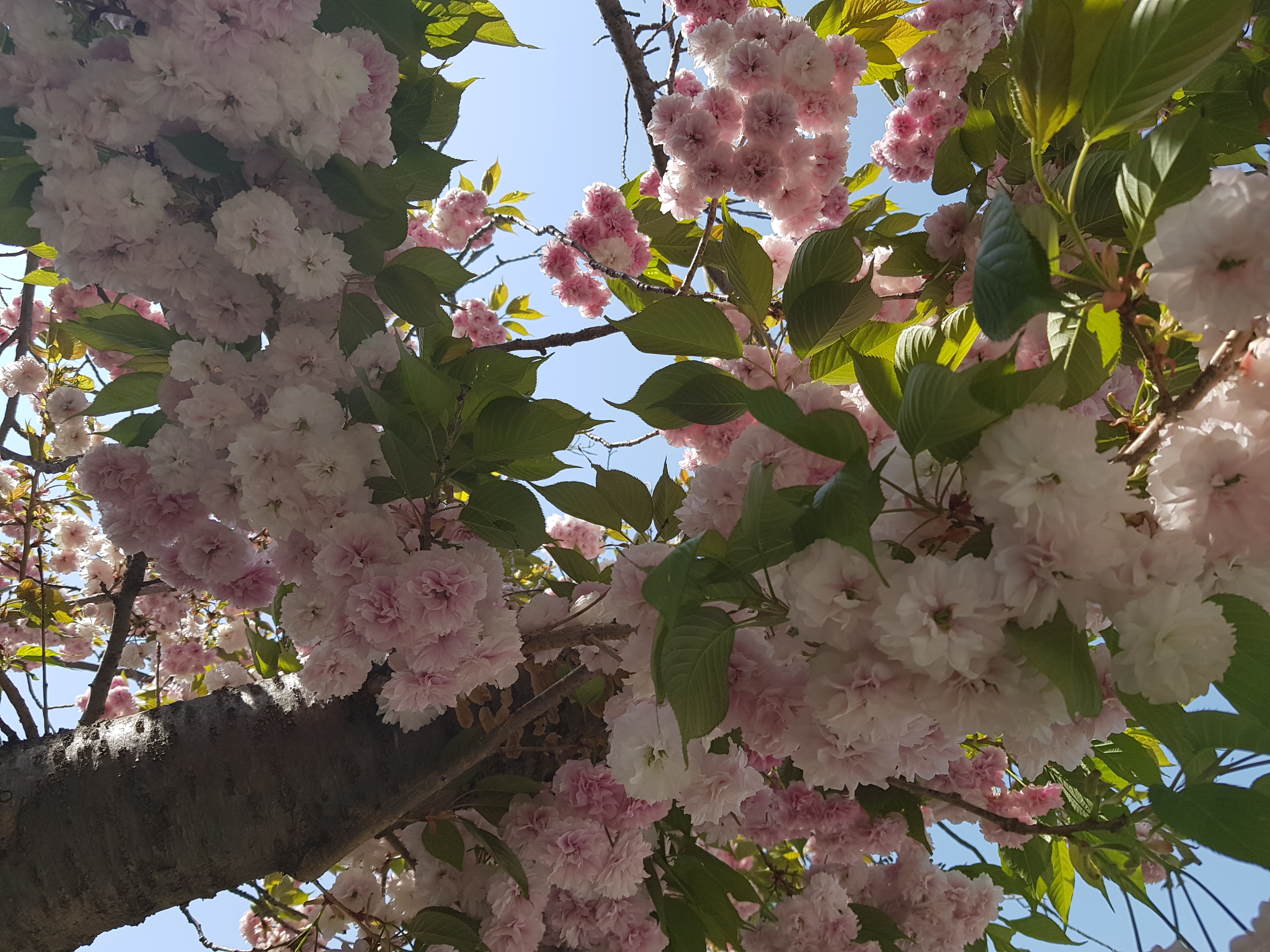 배드민턴을 치는 자리에는 늘 예쁜 꽃을 피우고 있던 두 그루의 벚나무.