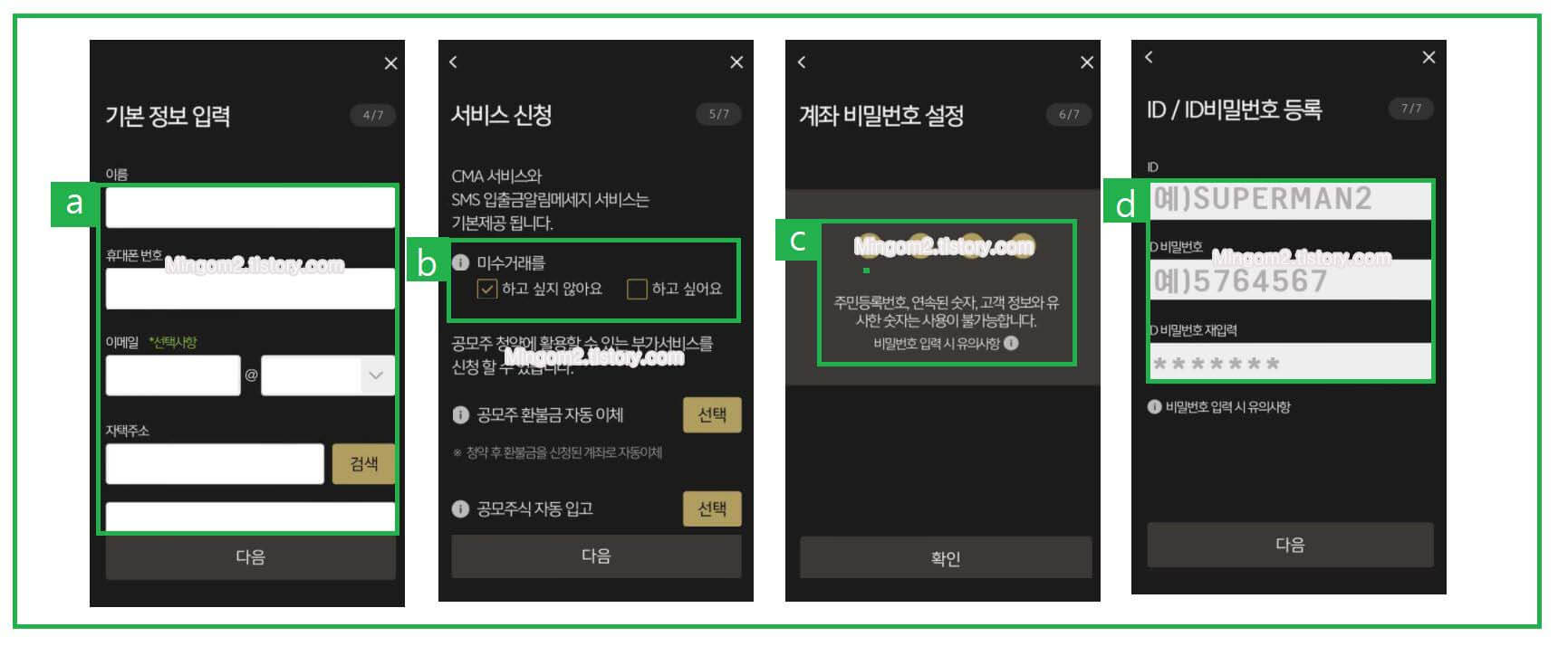 10. 기본정보 입력 후 서비스 신청 및 계좌 비밀번호 설정하시면 6단계까지 끝납니다.건전한 투자를 위해 ‘미수거래는 하고 싶지 않습니다’를 클릭하는 것이 좋습니다.